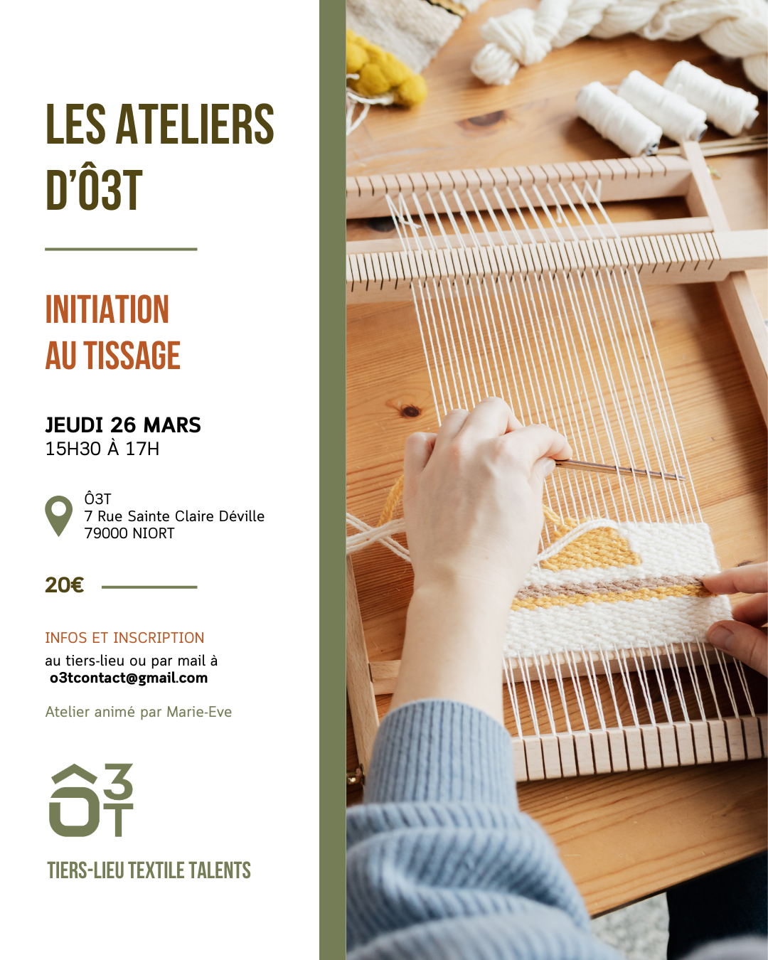 Ô3T – Tiers-lieu Textile Talents, vous propose différents ateliers pour développer vos compétences et libérer votre créativité. Mettez là en avant vendredi 27 mars dans un atelier d’initiation au tissage.