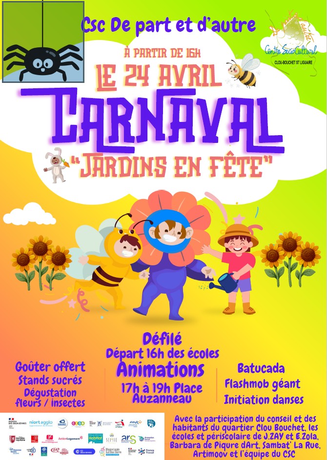 Défilé à partir des écoles à 16h, animations place Auzanneau, goûter offert avec dégustation de fleurs et d'insectes.
