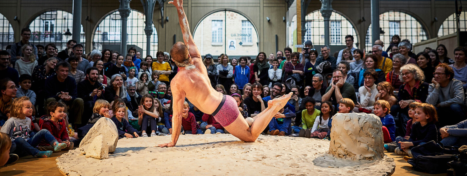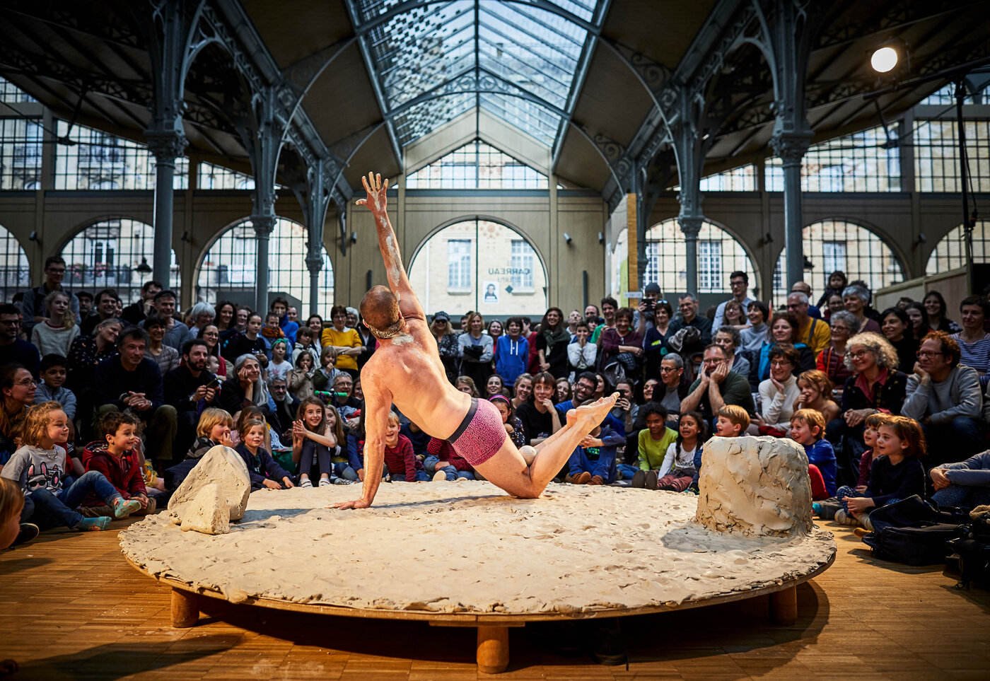 Le danseur et jongleur Nathan Israël, accompagné en direct par la harpiste Maéva Rabassa, ravive l’enfant en chacun de nous, celui qui prenait plaisir à sauter dans les flaques ou à jouer avec la matière en toute liberté. Gadoue ça colle, ça glisse, ça tâche et les enfants ne s’y trompent pas car ils connaissent le plaisir de la patouille ! Régressif à souhait, ce spectacle invite petits et grands à contourner les conventions sociales afin de retrouver durant quelques instants la joie libératrice de la transgression.