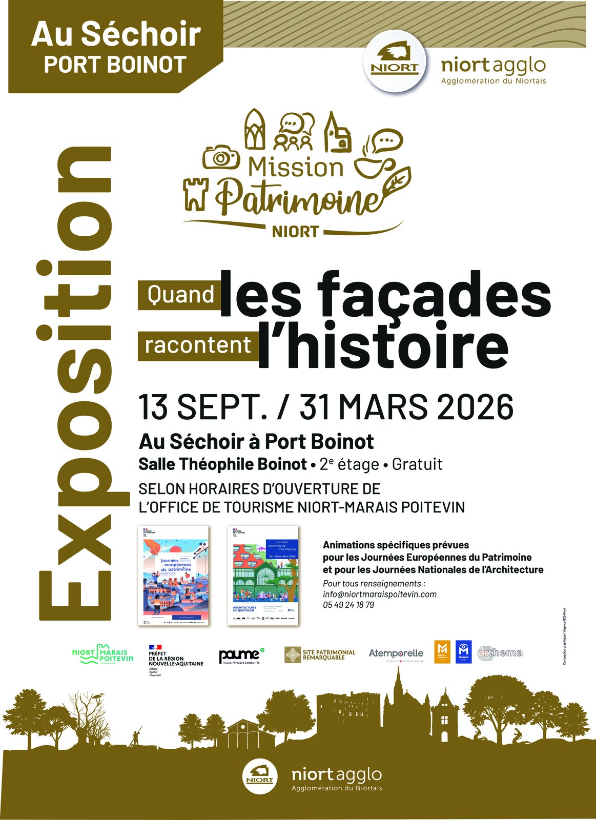 Cette exposition, issue du diagnostic patrimonial élaboré par l’agence Paume missionnée dans le cadre du PSMV, vise à retracer l’histoire architecturale de la ville. Elle vous invite à découvrir par une approche chronologique l’évolution de l’architecture du centre ancien de Niort. Complétée par l’édition 2025 du concours photos de la ville (**), elle propose de partir à la découverte du patrimoine niortais et invite aussi à prendre le temps de lever les yeux et de regarder la ville autrement, à travers ses façades et ses décors peints. L’inauguration de l’exposition se déroulera le 12 septembre à 15h30.