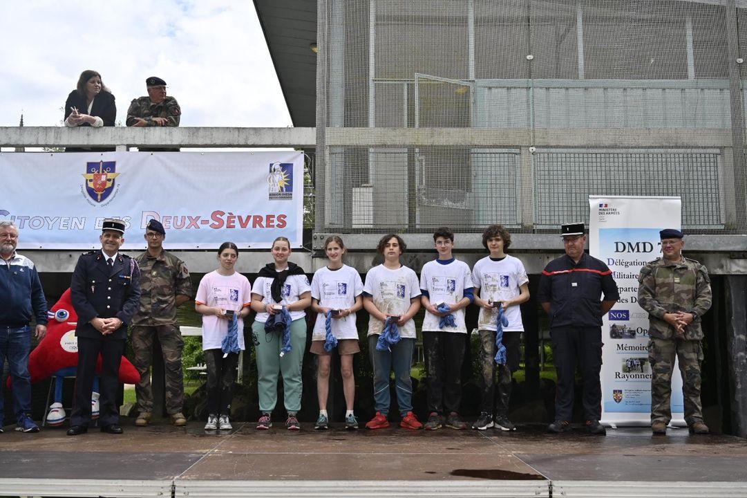 13 collèges du sud Deux-Sèvres ont participé aujourd'hui aux épreuves du 15e Rallye citoyen des collégiens au parc Pré-Leroy à Niort. Cet événement est organisé sous l'égide du trinôme académique (Education nationale, Armées, Institut des hautes études de la Défense nationale) par la Délégation militaire départementale des Deux-Sèvres sur le thème du 80e anniversaire de la Libération et des Jeux olympiques et paralympiques. Bravo aux 83 élèves, bien sûr à l'équipe gagnante du collège Pierre et Marie Curie de Niort ! Merci au champion paralympique 1500 mètres en 2016 aux JO de Tokyo, Louis Radius, présent à Niort aujourd'hui auprès des jeunes participants.