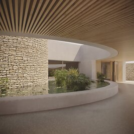 Un soin particulier est apporté au parcours des familles. La rotonde, cœur du projet, distribue l’ensemble des espaces ouverts au public et crée une atmosphère protectrice.