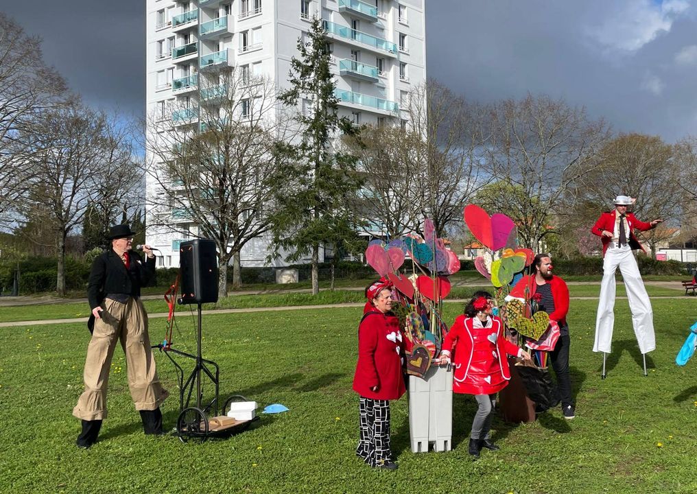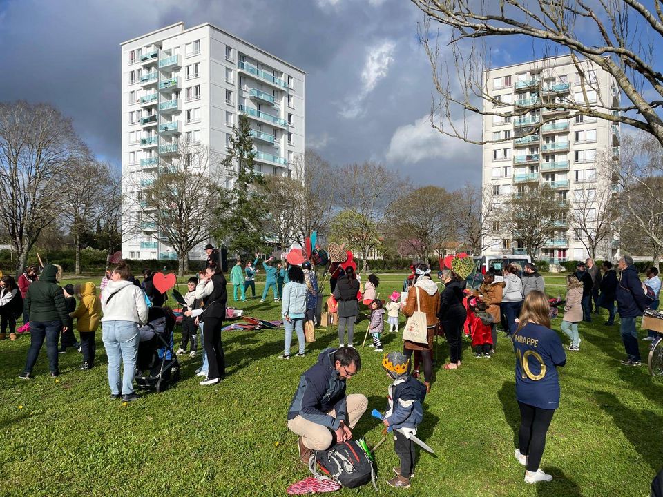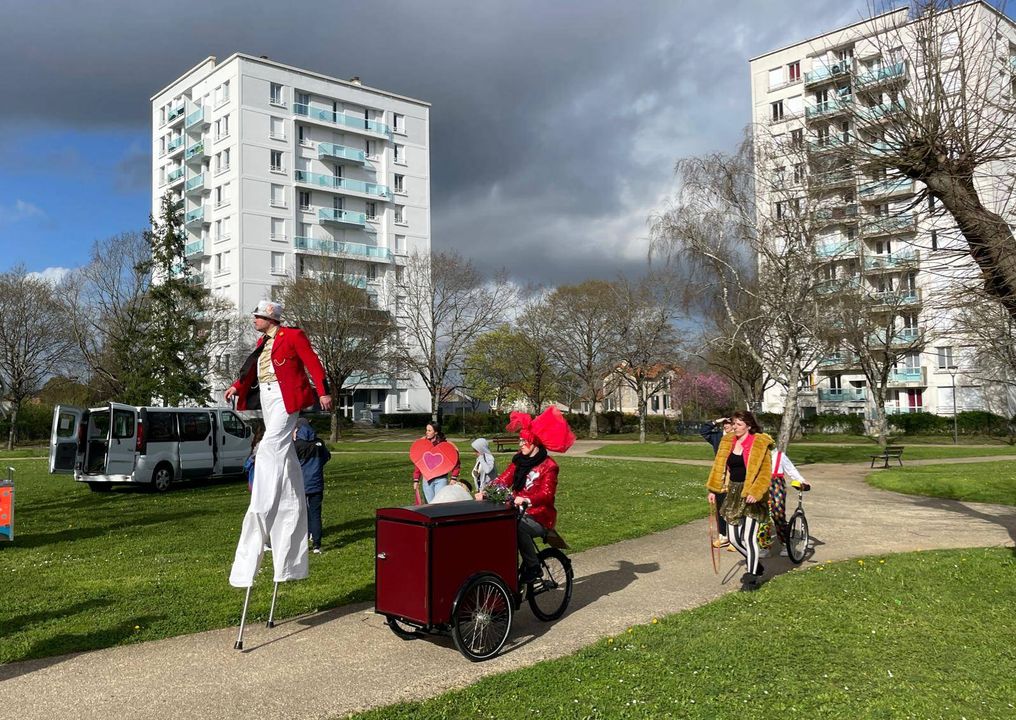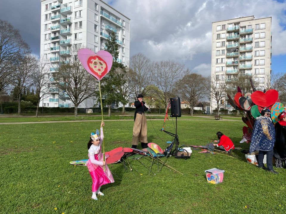 Carnaval du quartier de la Tour Chabot : après des semaines de préparation par les habitants et le centre socioculturel, voici venu le grand jour du retour de la marionnette géante Galuchette 😀 Belle déambulation en fanfare dans le quartier cet après-midi !