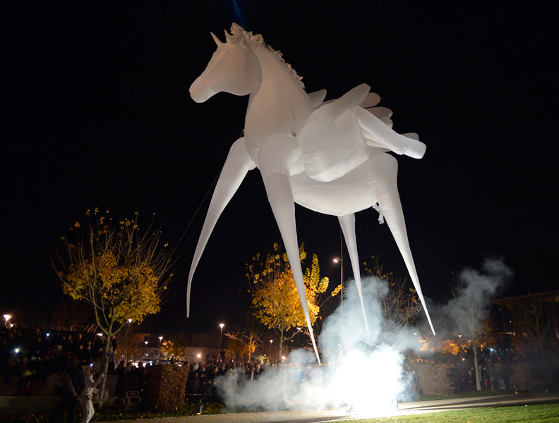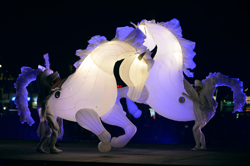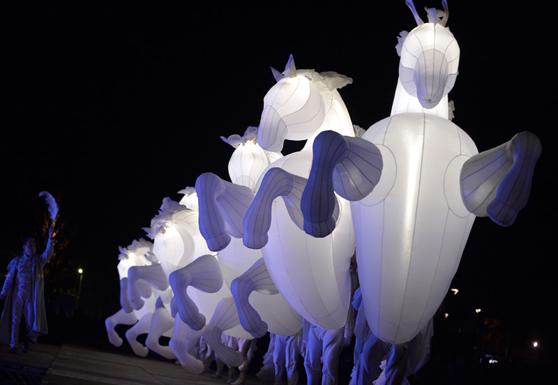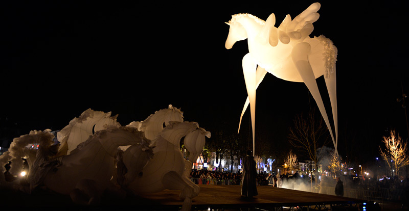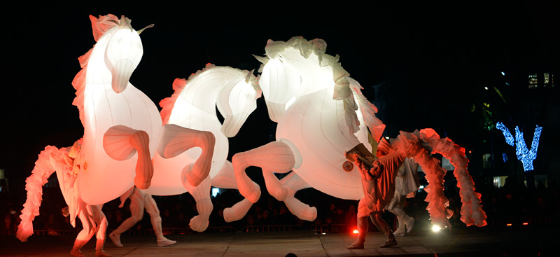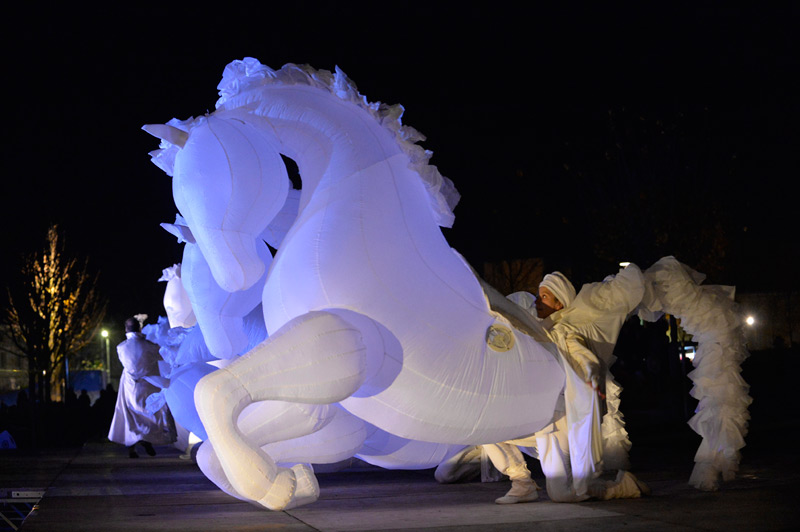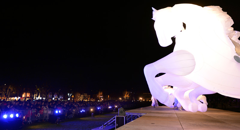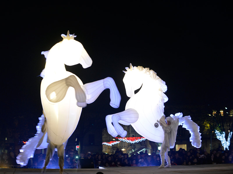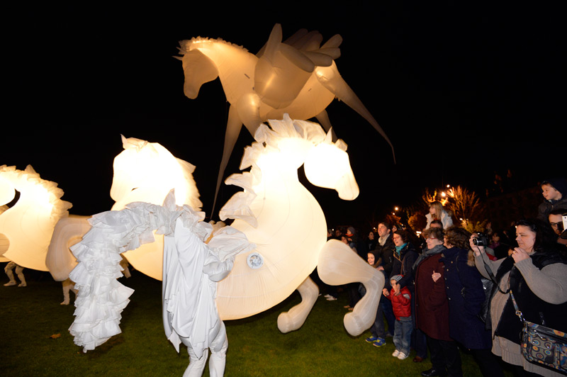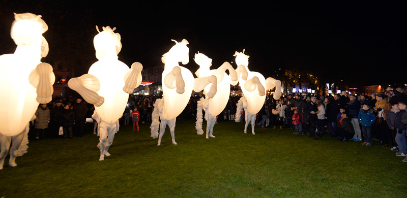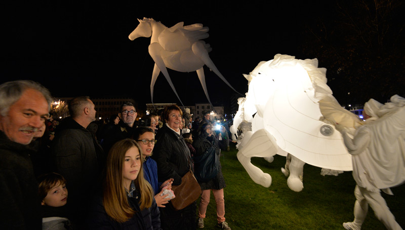 Pour le lancement de Noël à Niort, le public avait rendez-vous dans les Jardins de la Brèche, vendredi 4 décembre 2015 en début de soirée. Un spectacle magique au cours duquel les comédiens de la compagnie Quidams se sont transformés en chevaux géants et lumineux.