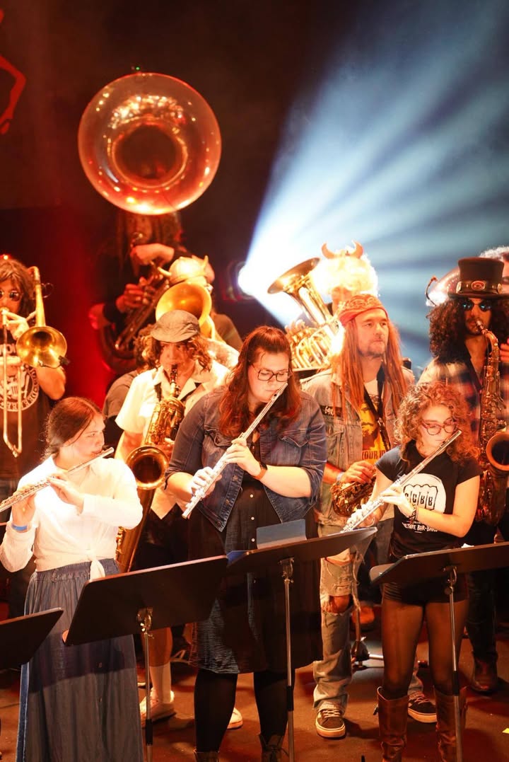Festival Rise&Fall Le Camji : l'orchesyre d'harmonie du conservatoire de musique de Niort Agglo a rencontré la fanfare Pastors of Muppets pour apprendre jouer du métal avec leurs instruments. Challenge réussi avec une impressionnante représentation au Moulin du Roc - Scène nationale à Niort samedi en première partie de soirée !