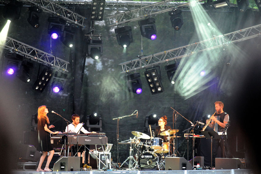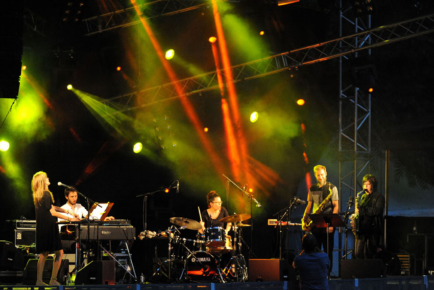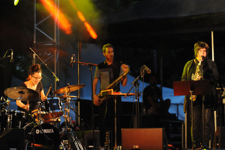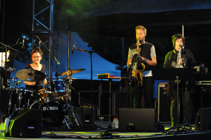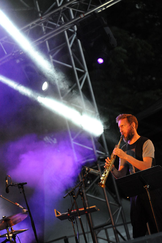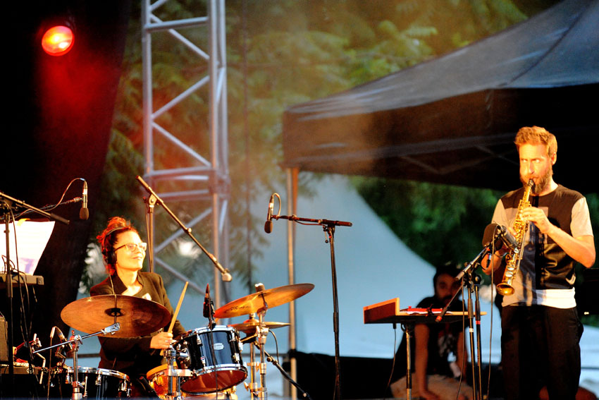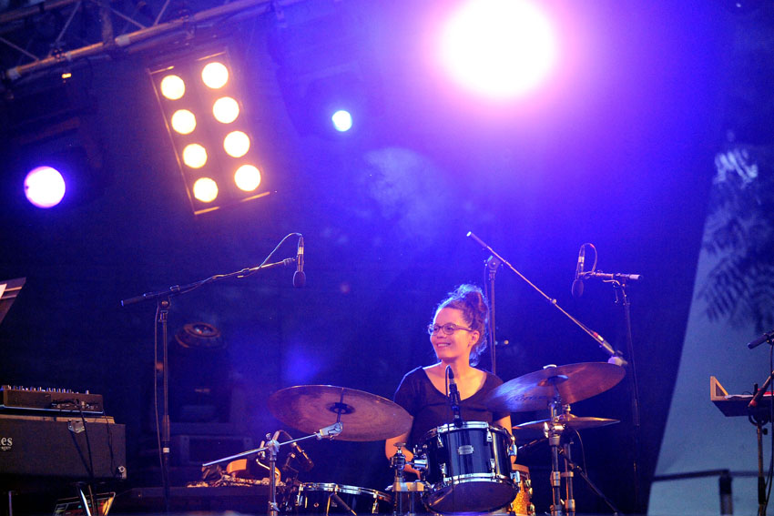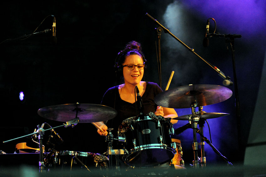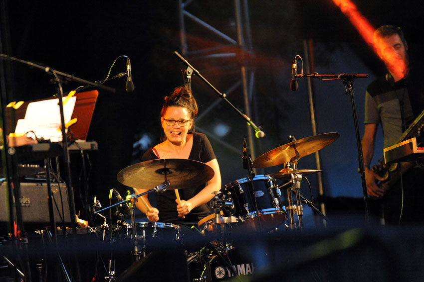 Rencontre entre la talentueuse batteuse Anne Pacéo et la saxophoniste Géraldine Laurent vendredi 22 juillet 2016, sur la scène des Jeudis de Niort. Photos signées Christophe Bernard.