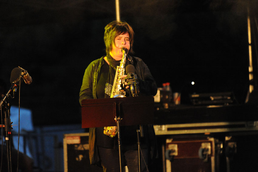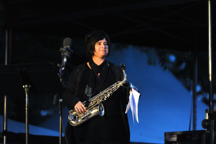 Rencontre entre la talentueuse batteuse Anne Pacéo et la saxophoniste Géraldine Laurent vendredi 22 juillet 2016, sur la scène des Jeudis de Niort. Photos signées Christophe Bernard