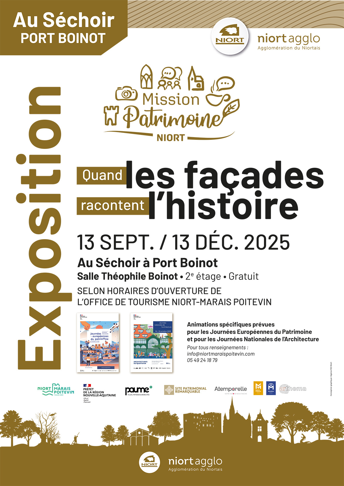Cette exposition, issue du diagnostic patrimonial élaboré par l’agence Paume missionnée dans le cadre du PSMV, vise à retracer l’histoire architecturale de la ville. Elle vous vous invite à découvrir par une approche chronologique l’évolution de l’architecture du centre ancien de Niort. Complétée par l’édition 2025 du concours photos de la ville (**), elle propose de partir à la découverte du patrimoine niortais et invite aussi à prendre le temps de lever les yeux et de regarder la ville autrement, à travers ses façades et ses décors peints. L’inauguration de l’exposition se déroulera le 12 septembre à 15h30.