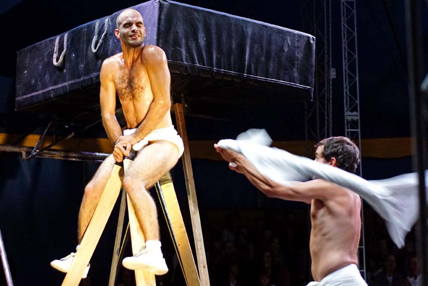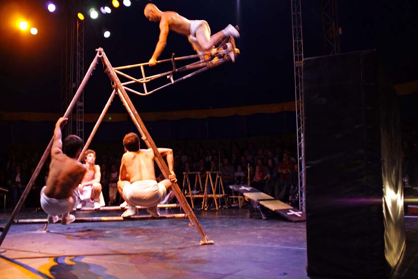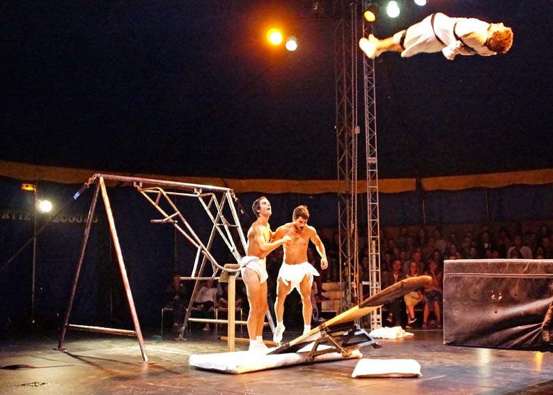 La compagnie La Meute a ouvert le Festival de cirque de Niort, mardi 28 juillet 2015 sous le chapiteau dressé à l'espace Erna-Boinot. Nouvelle représentation ce mercredi 29 juillet même lieu.