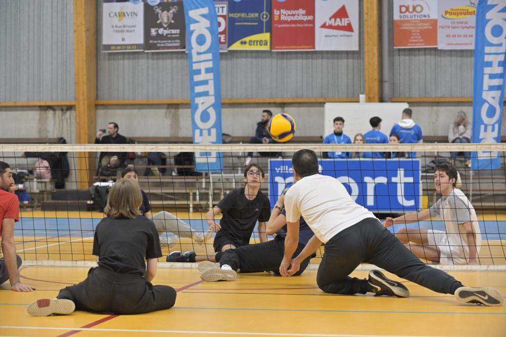 AccueilActualités de la ville de Niort Handisport : volley-ball assis :Handisport : volley-ball assisLe volley-ball assis est un handisport dérivé du volley-ball pratiqué assis par des handicapés physiques. Il a été pratiqué ce week-end à #NiortPublié le 04/02/2023Galerie photos/vidéos