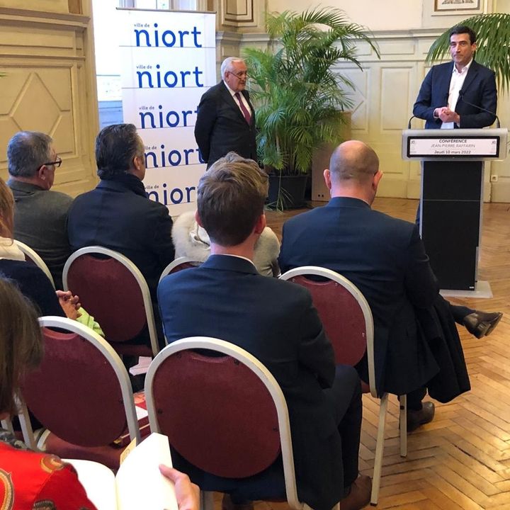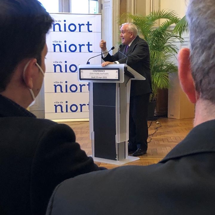 AccueilActualités de la ville de Niort Jean-Pierre Raffarin à Niort :Jean-Pierre Raffarin à NiortAncien Premier ministre de 2002 à 2005 et vice-président du Sénat, Jean-Pierre Raffarin, a donné une conférence à l'hôtel de Ville de Niort ce soir, à l"occasion de la sortie de son livre "Choisir un chef".Publié le 10/03/2022Galerie photos/vidéos