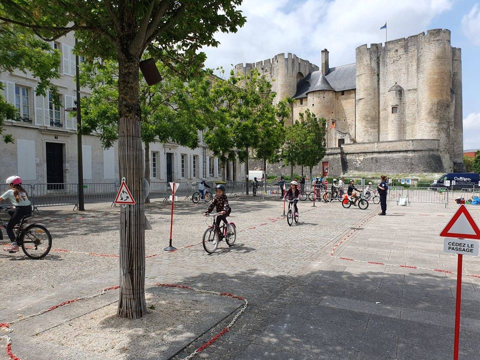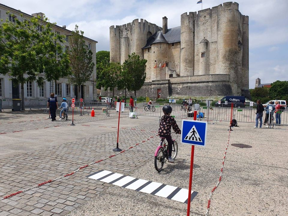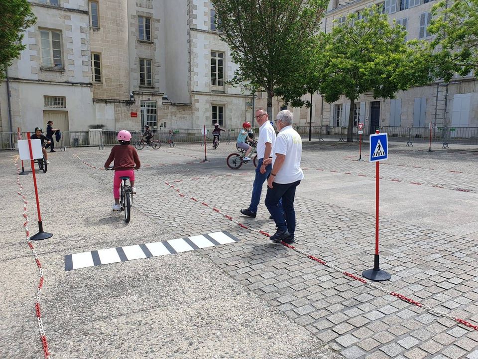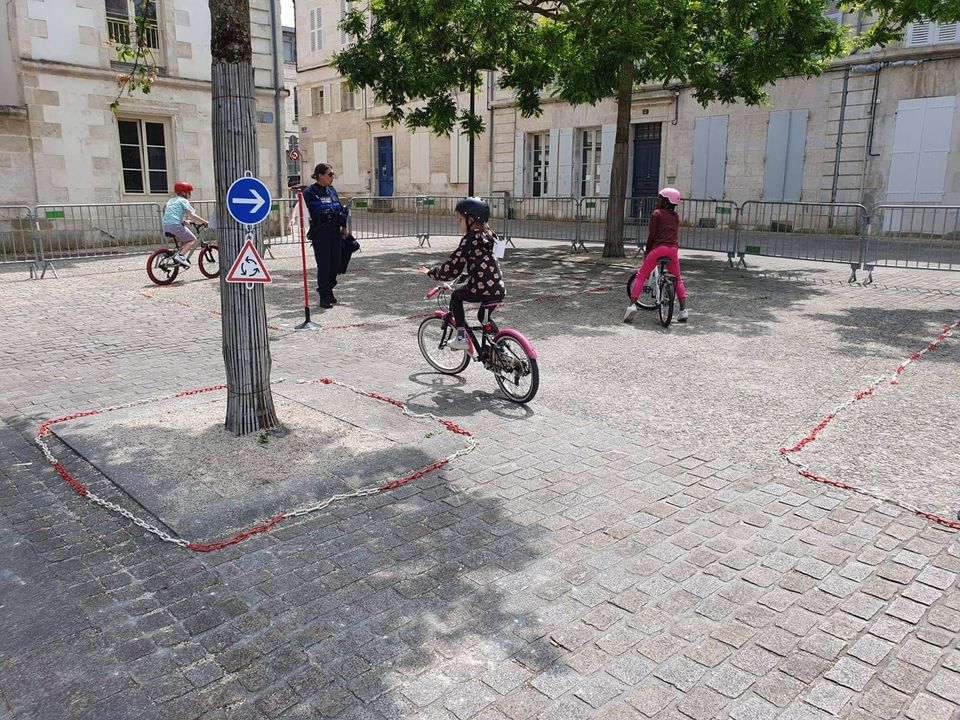 200 enfants de CE2 à CM2 des écoles Michelet, Paul-Bert, Notre-Dame et Ste-Thérèse participent à une journée de sécurité routière organisée par les polices municipale et nationale, les intervenants départementaux de sécurité routière Prévention MAIF l'association Prévention routière #Vélo en ville