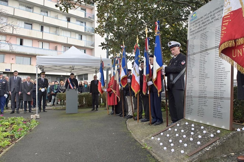 Aujourd'hui à #Niort, la cérémonie à l'occasion de la journée nationale de la mémoire de l'Holocauste et de la prévention des crimes contre l'humanité s'est déroulée devant la stèle située rue des Trois-Coigneaux. #devoirdememoire