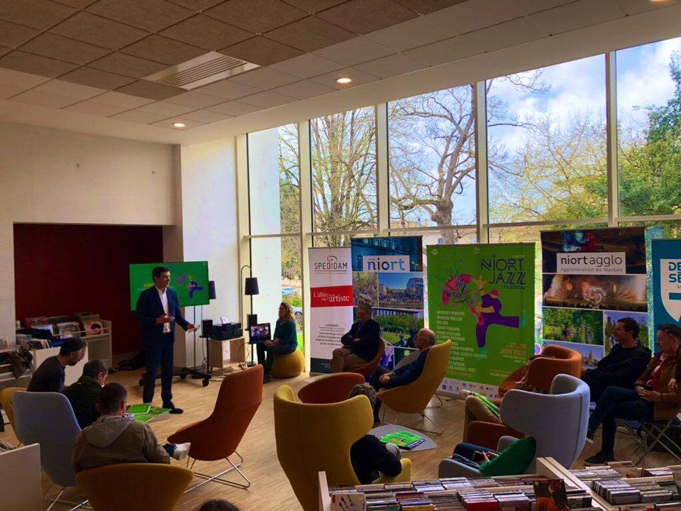 Lancement à la médiathèque de la 3e édition du Niort Jazz Festival qui se déroulera à Pre-Leroy #Niort du 27 au 30 juin prochain. 4 jours de festival, 2 scènes dont 1 en accès libre, 17 concerts dont 9 gratuits #Niortterredefestival niortjazzfestival.com @Spedidam @NvelleAquitaine