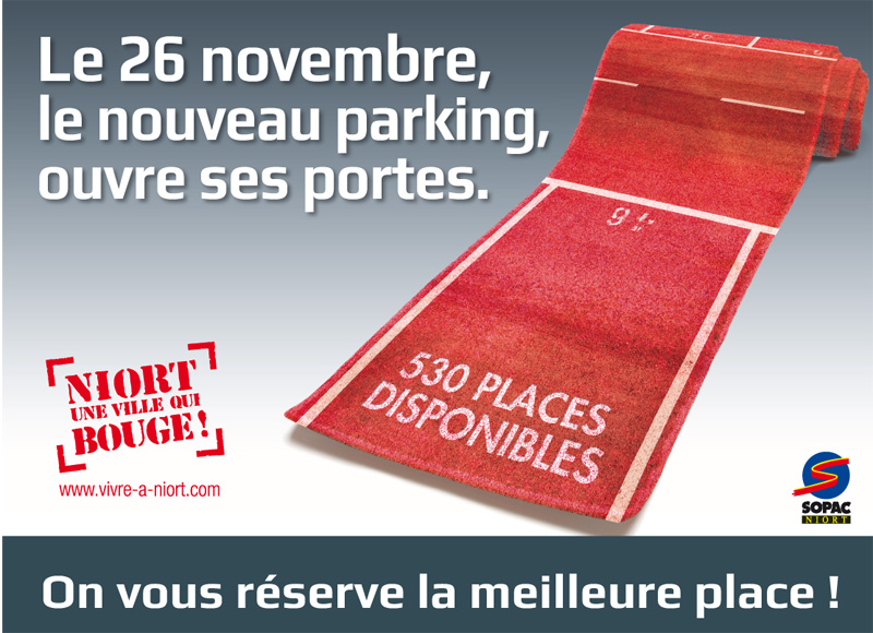 Les véhicules, sauf les campings car et les véhicules utilitaires, entreront par l'avenue Bujault au niveau -1 et ressortiront par l'avenue des Martyrs de la Résistance au niveau -2. Les 530 places sont réparties sur deux niveaux, l'ensemble agencé en douze chais imaginés par l'architecte. Les motos ont leur espace de stationnement réservé à l'entrée du parking. Pour simplifier l'utilisation de l'équipement, un système de guidage lumineux permet de repérer de loin les places libres.