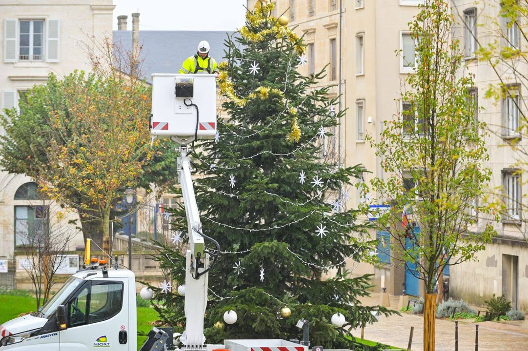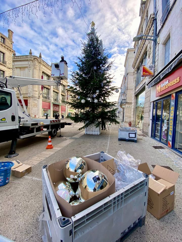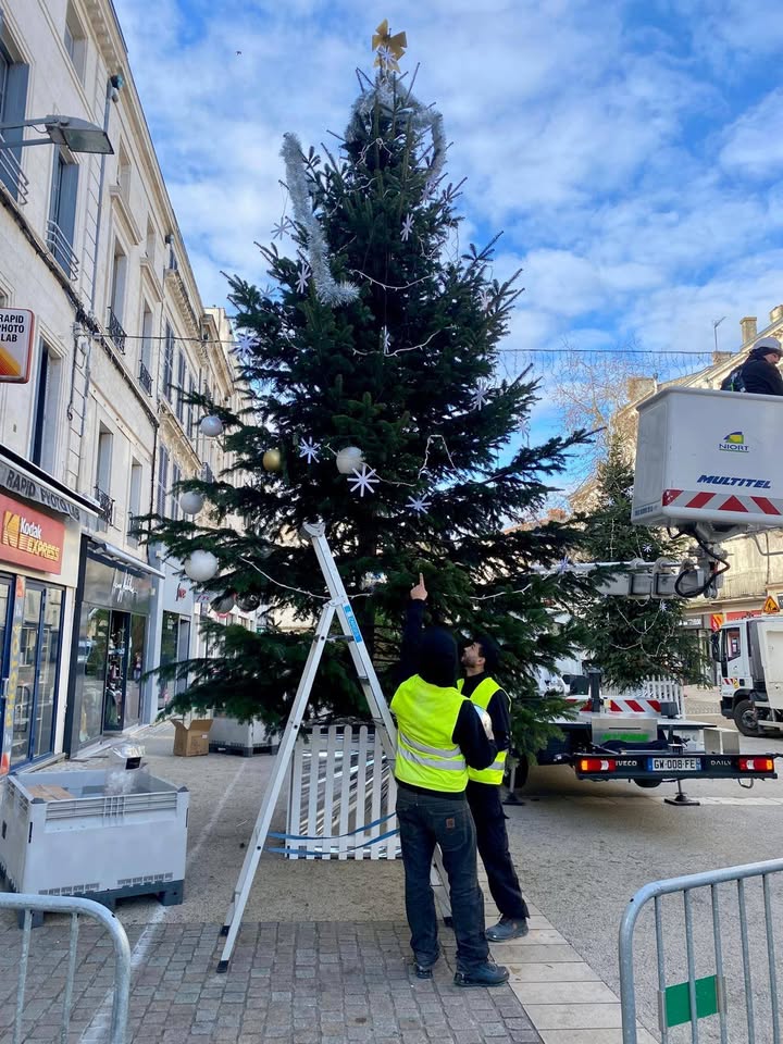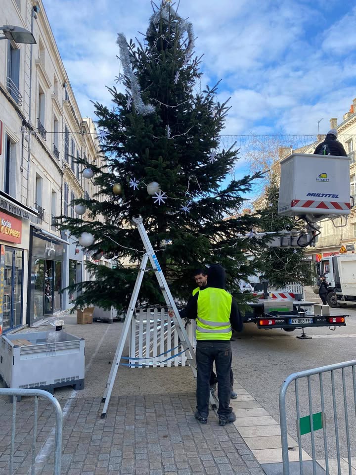 AccueilActualités de la ville de Niort Les préparatifs de Noël à Niort 🎄 se poursuivent ! :Les préparatifs de Noël à Niort 🎄 se poursuivent ! Rendez-vous samedi 29 novembre pour le lancement des festivités.Publié le 19/11/2025Galerie photos/vidéos Le programme est ici 👉 https://www.niortdedansdehors.fr/noel