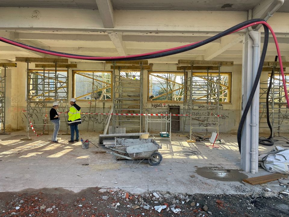 Place de Strasbourg, les travaux de gros œuvre ont commencé dans les locaux occupés par le CSC Grand Nord. Le rez-de-chaussée de l'ex-bâtiment scolaire va être transformé en préau. La cour intérieure deviendra un square qui fera le lien avec la place Denfert Rochereau.