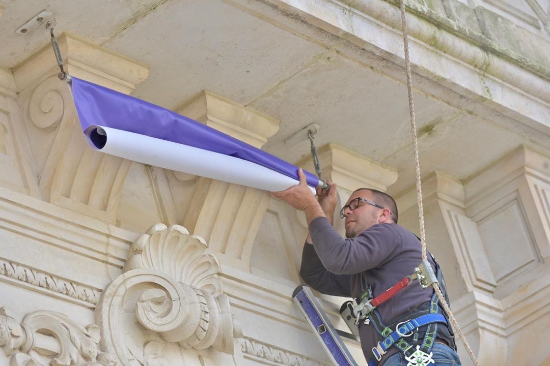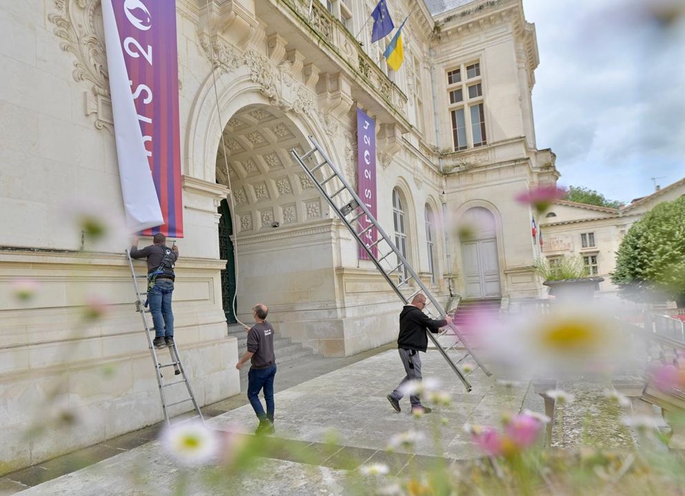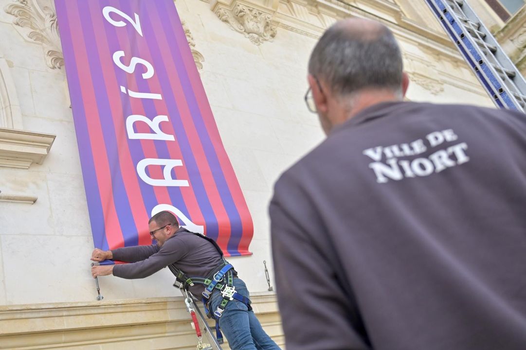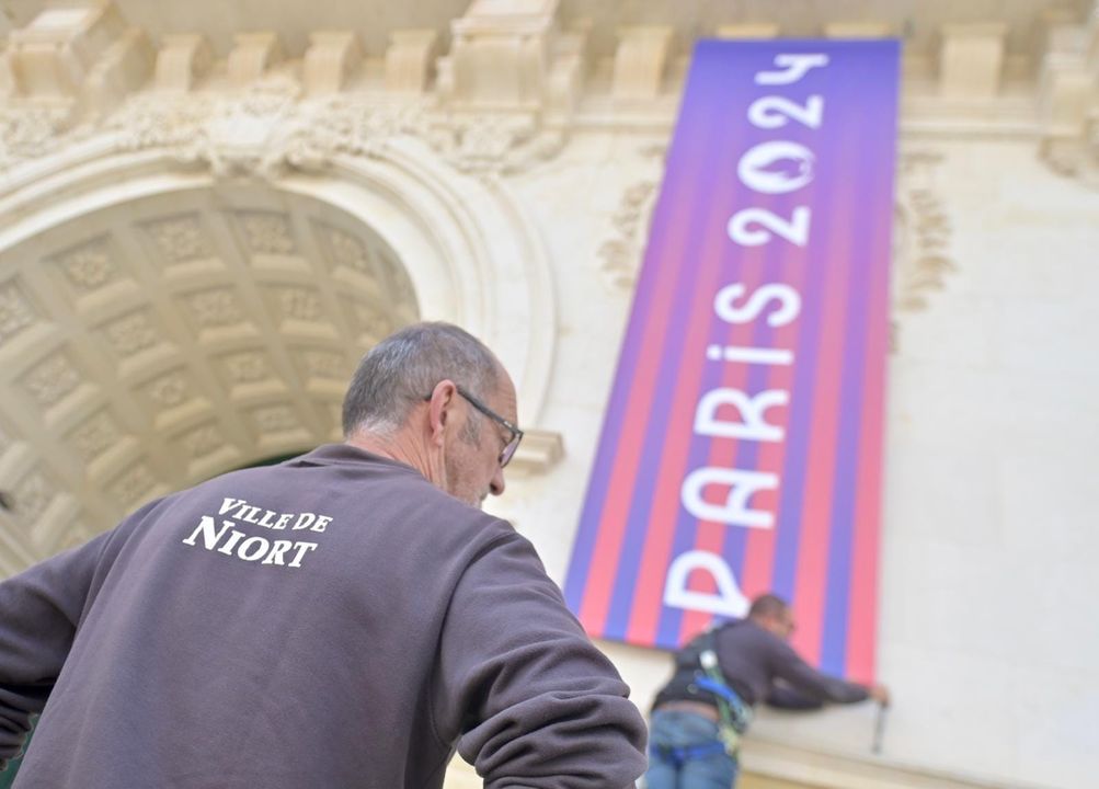 Le passage de la Flamme olympique à Niort dimanche 2 juin se prépare ! Les services municipaux sont sur le pont toute la semaine pour préparer l'événement. L'Hôtel de Ville se pare des couleurs des J.O.