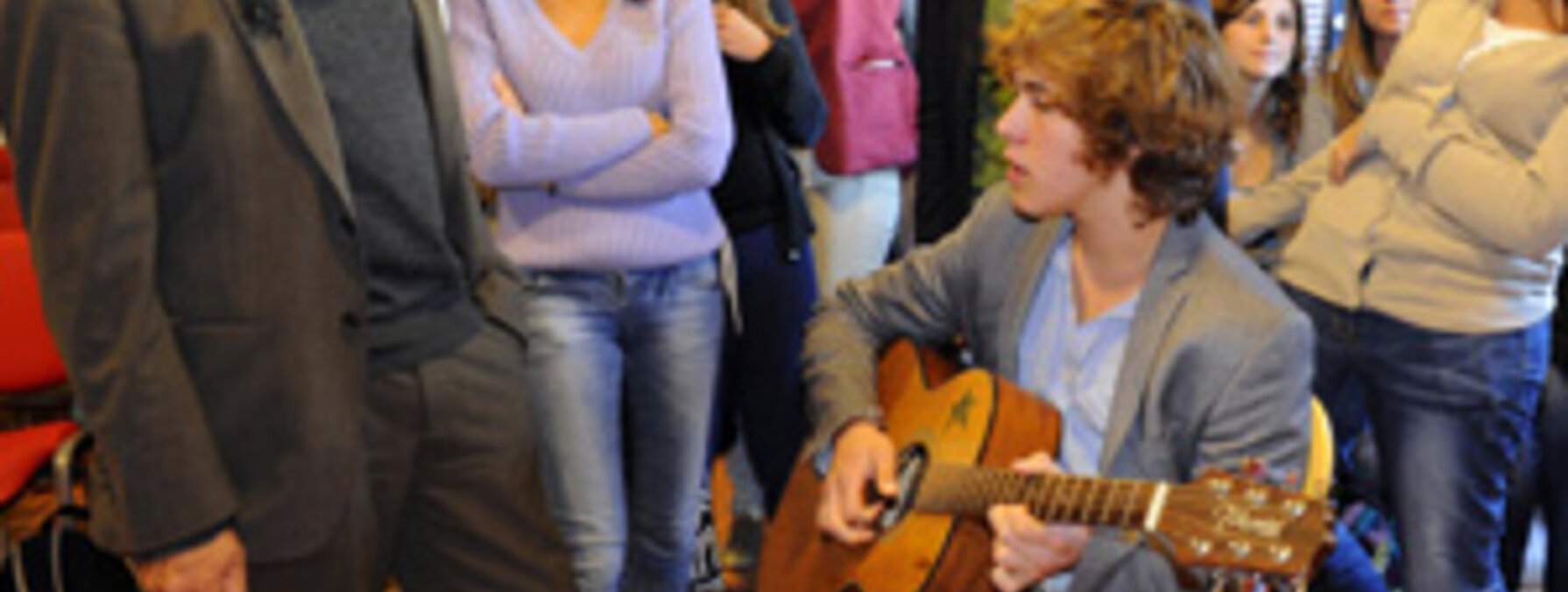 En résidence, l’auteur-compositeur et chanteur Marcel Kanche a entraîné les élèves de 1ère littéraire du lycée de la Venise Verte à Niort dans un atelier d’écriture fécond, mercredi 19 octobre 2011. Des textes, une chanson y ont pris corps. Avec pour finalité le festival Nouvelles Scènes 2012.