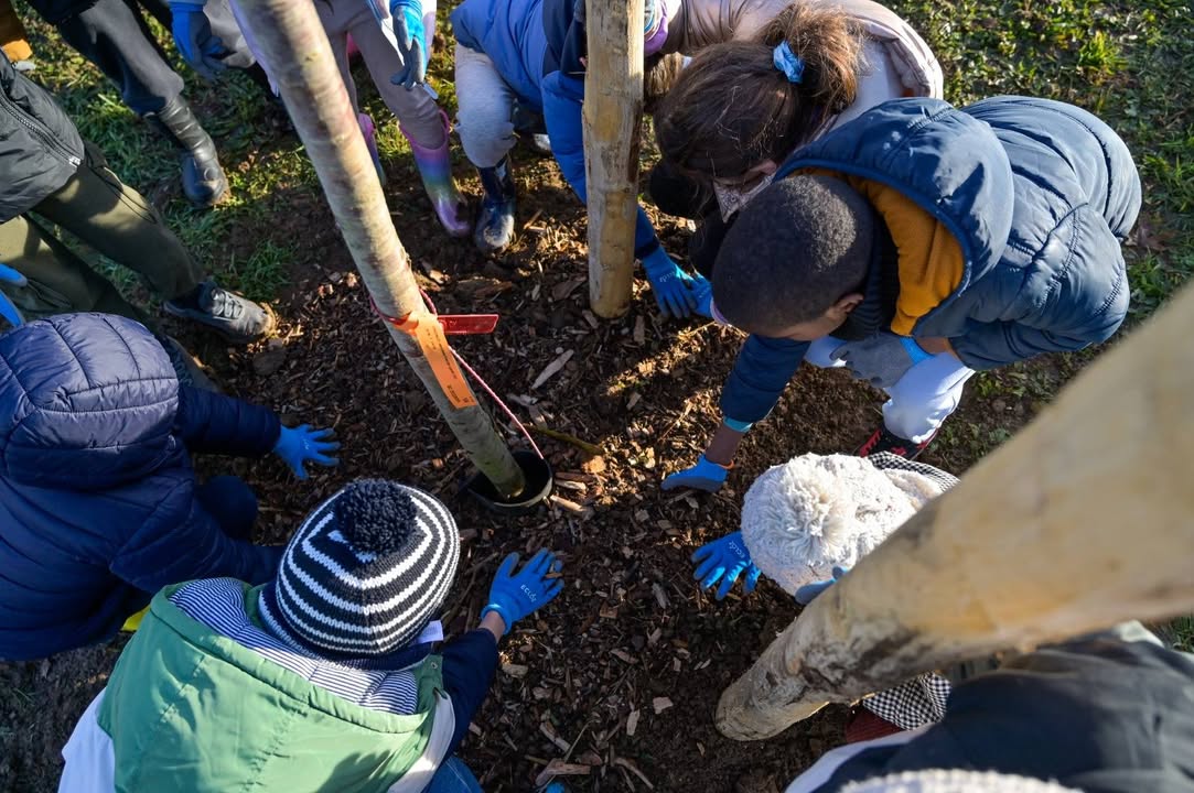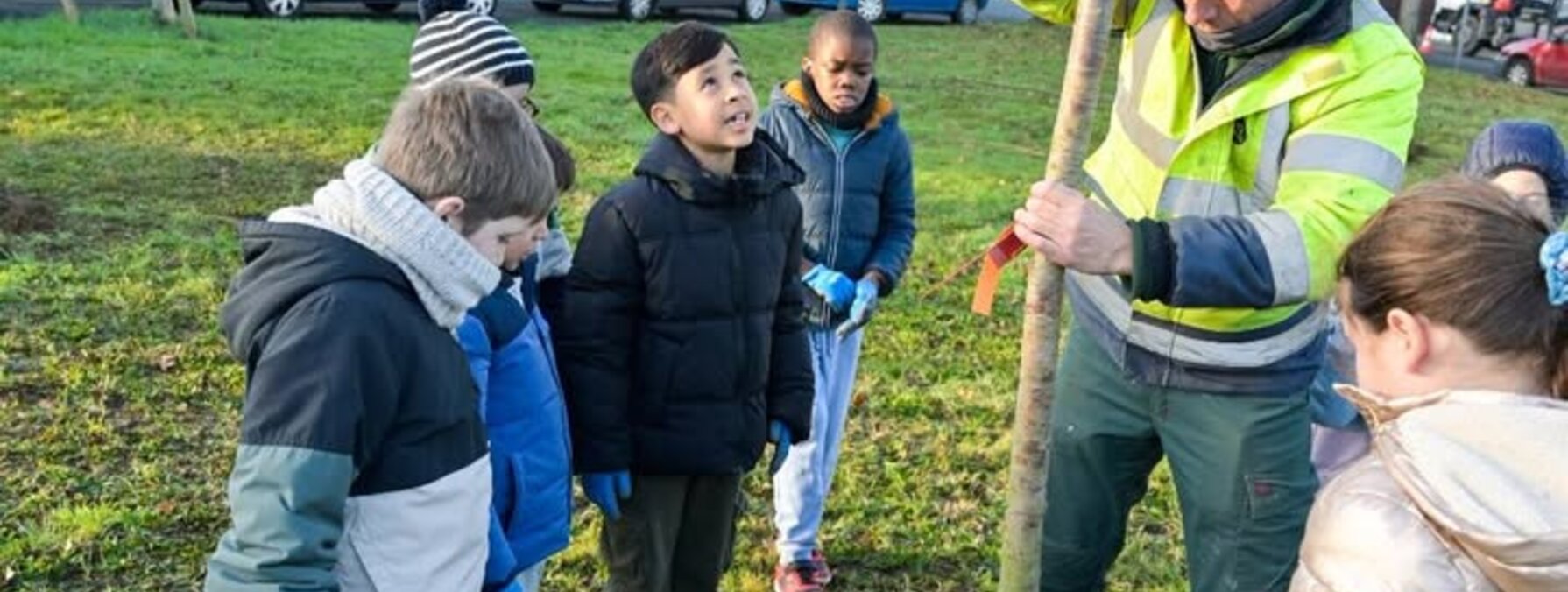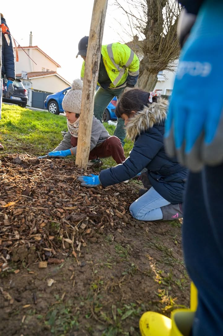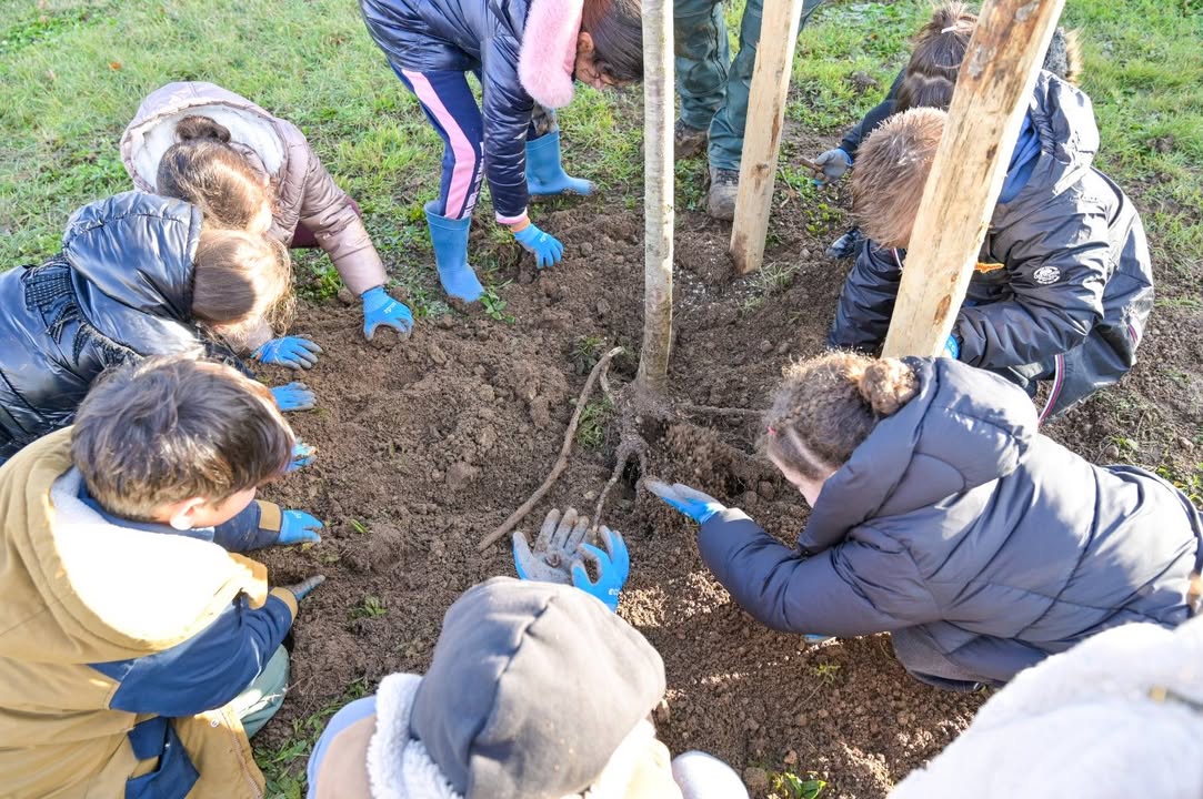 Les plantations d'arbres se poursuivent dans les quartiers, dans le cadre du programme Niort Canopée. Ici, place Dominique Arago à Saint-Florent, les élÚves de l'école Pasteur ont participé aux cÎtés des jardiniers de la ville à la plantation de cinq cerisiers du Japon.