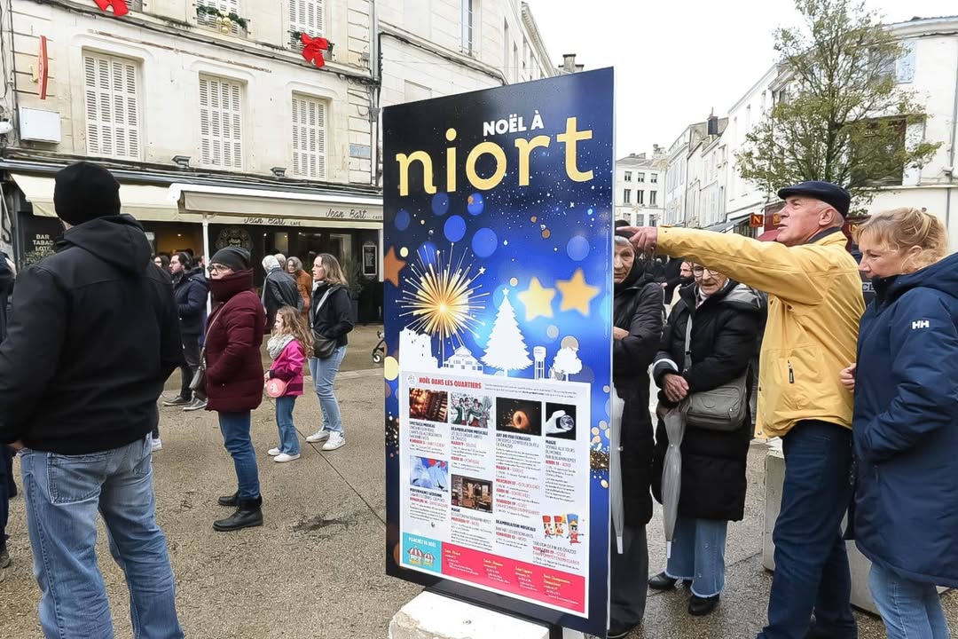 AccueilActualités de la ville de Niort Noël à Niort est lancé ! :Noël à Niort est lancé ! Dans quelques minutes, place aux illuminations et projections sur les halles 😀Publié le 29/11/2025Galerie photos/vidéos