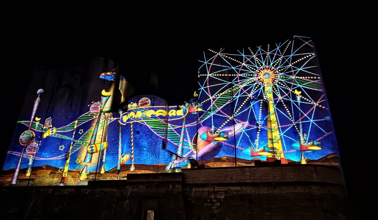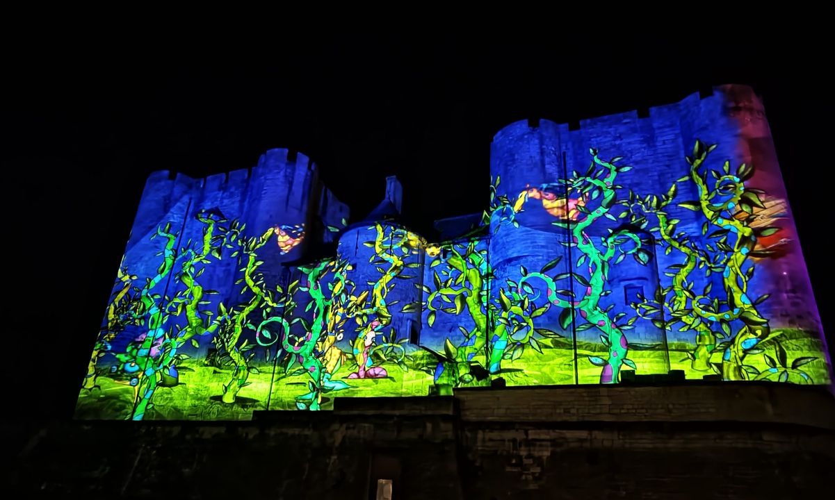 🚀🌙 Préparez-vous pour un Noël interstellaire à #Niort ! Jusqu'au 8 janvier, le Donjon se transforme chaque soir en écran géant pour un spectacle visuel et sonore.