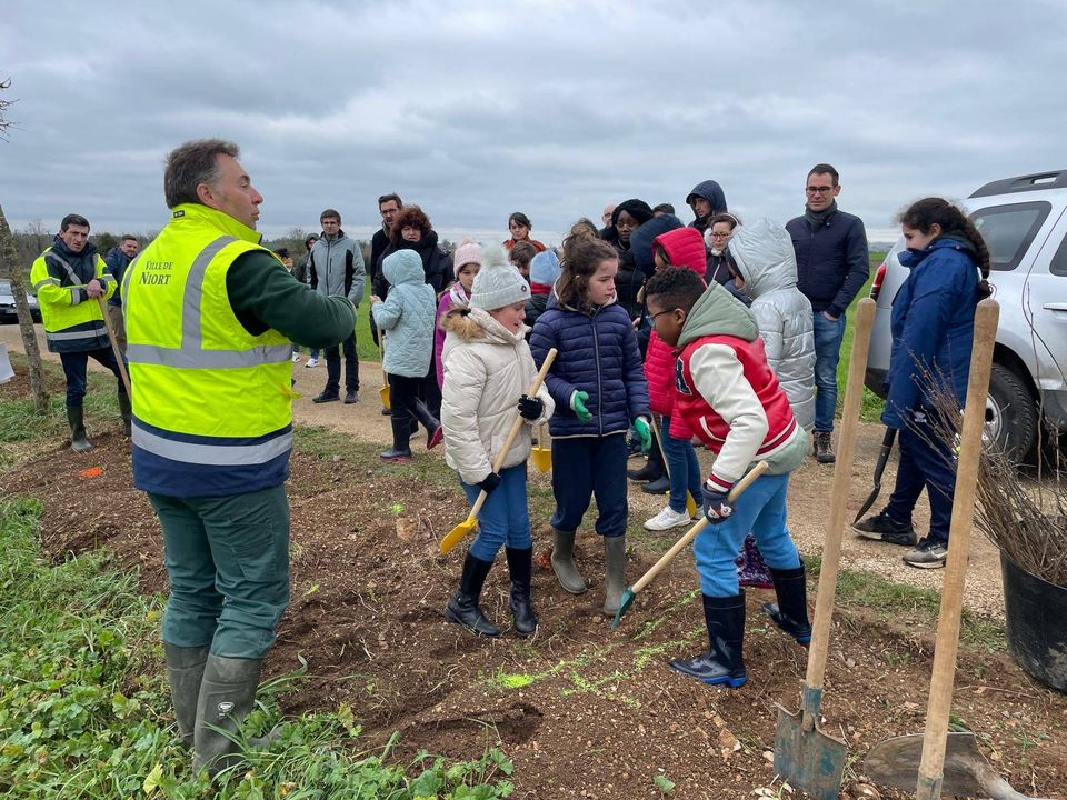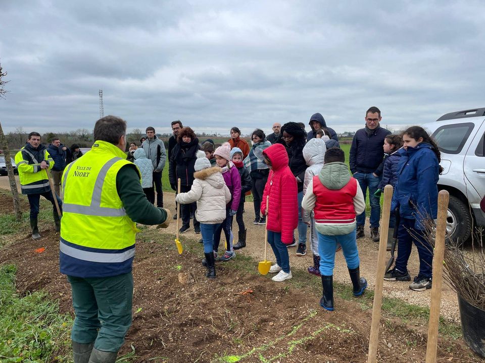 Cet après-midi, le conseil municipal enfants a participé aux plantations d'arbres par @Mairie_Niort chemin de Champ Cartier, sur le chemin communal du 3e Millénaire, côté avenue de Limoges. Le programme #NiortCanopée se poursuit : 1 🌳 planté par habitant d'ici 2030 😀