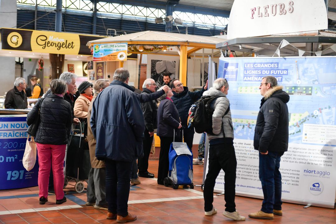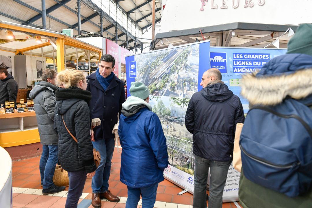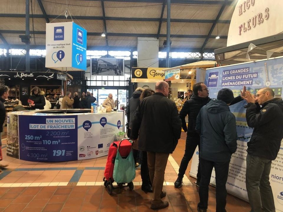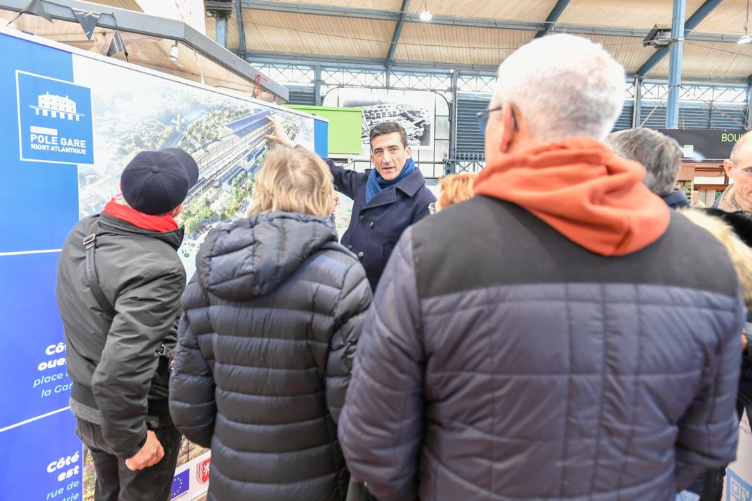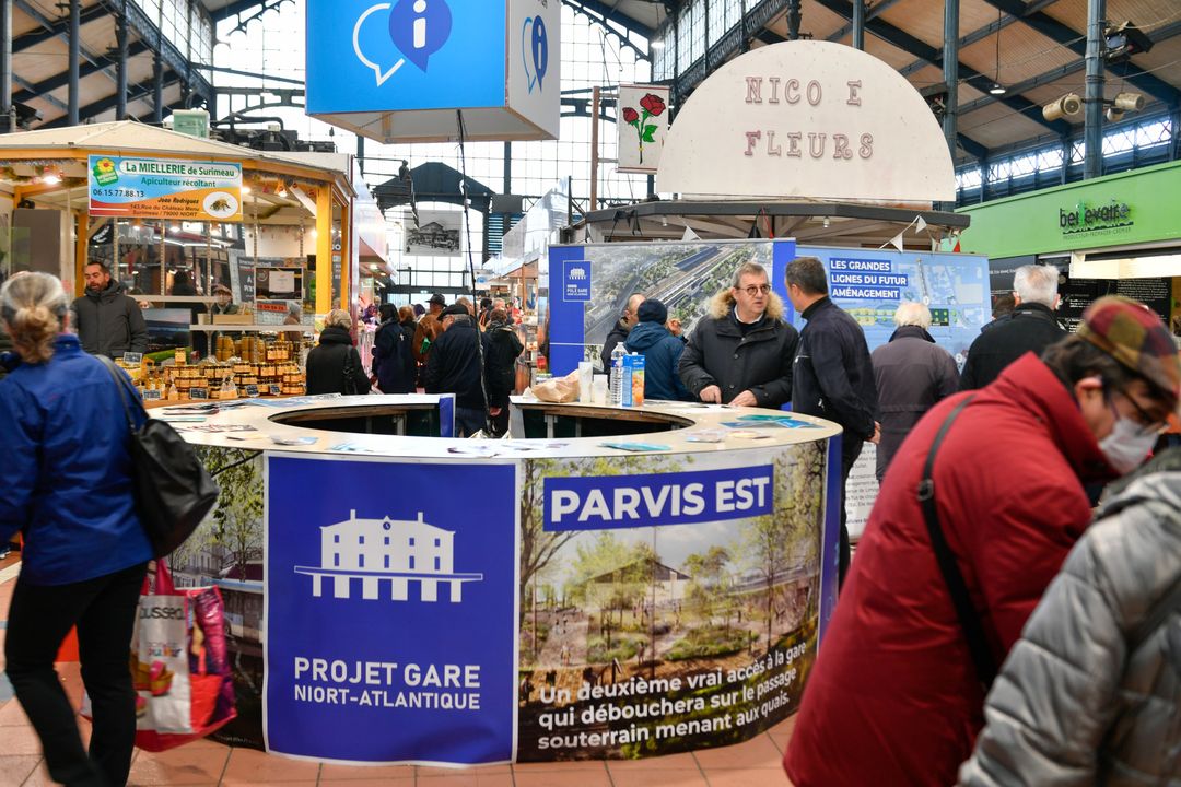 AccueilActualités de la ville de Niort Présentation du projet gare Niort Atlantique :Présentation du projet gare Niort AtlantiqueAujourd'hui, présentation du projet gare Niort Atlantique sous les halles par les élus jusqu'à 12h. N'hésitez pas à venir si vous avez des questions Publié le 26/11/2022Galerie photos/vidéos