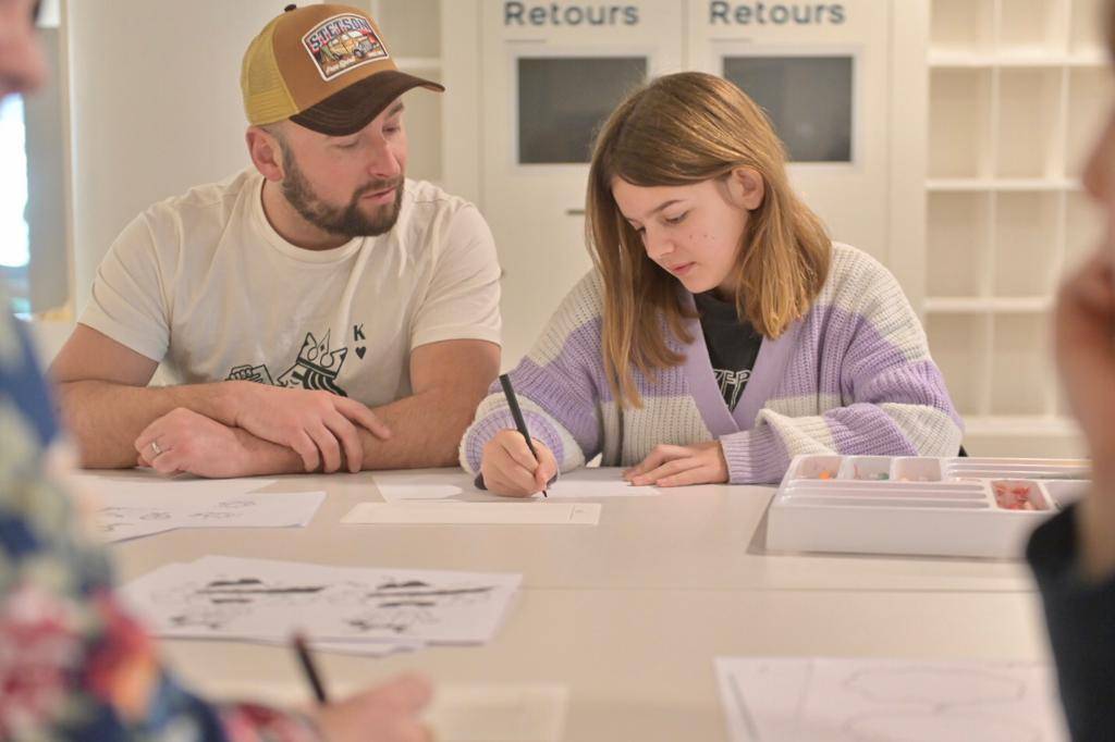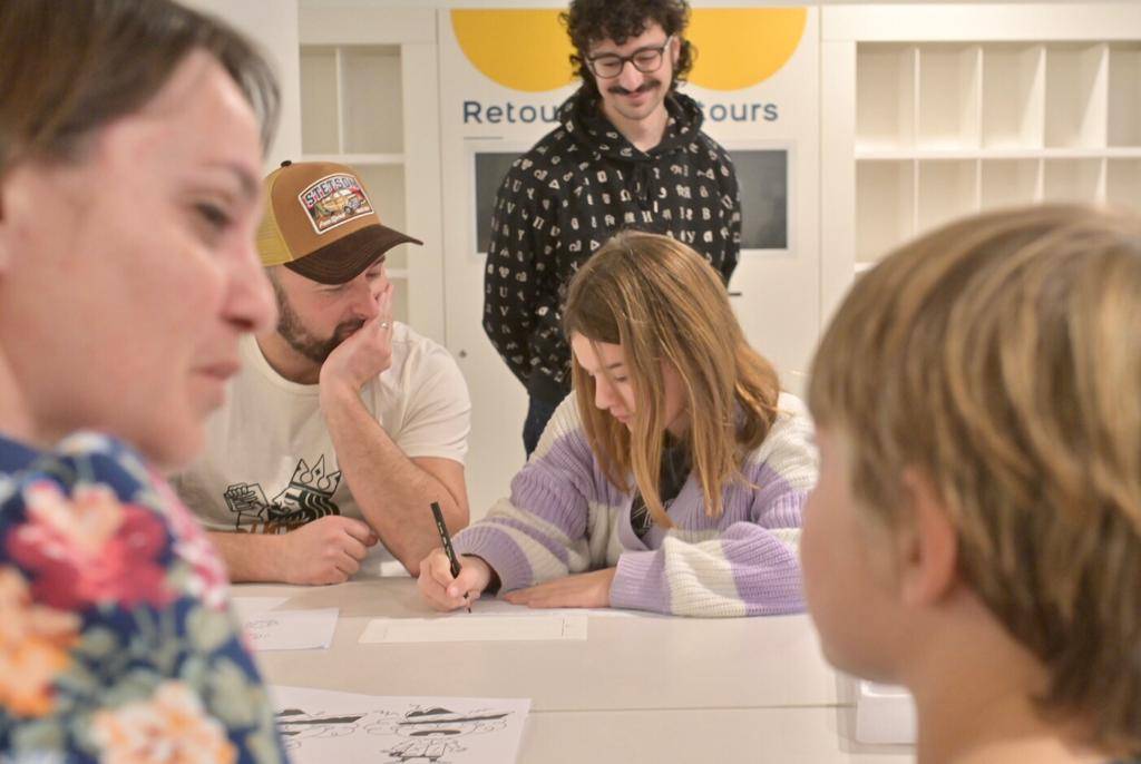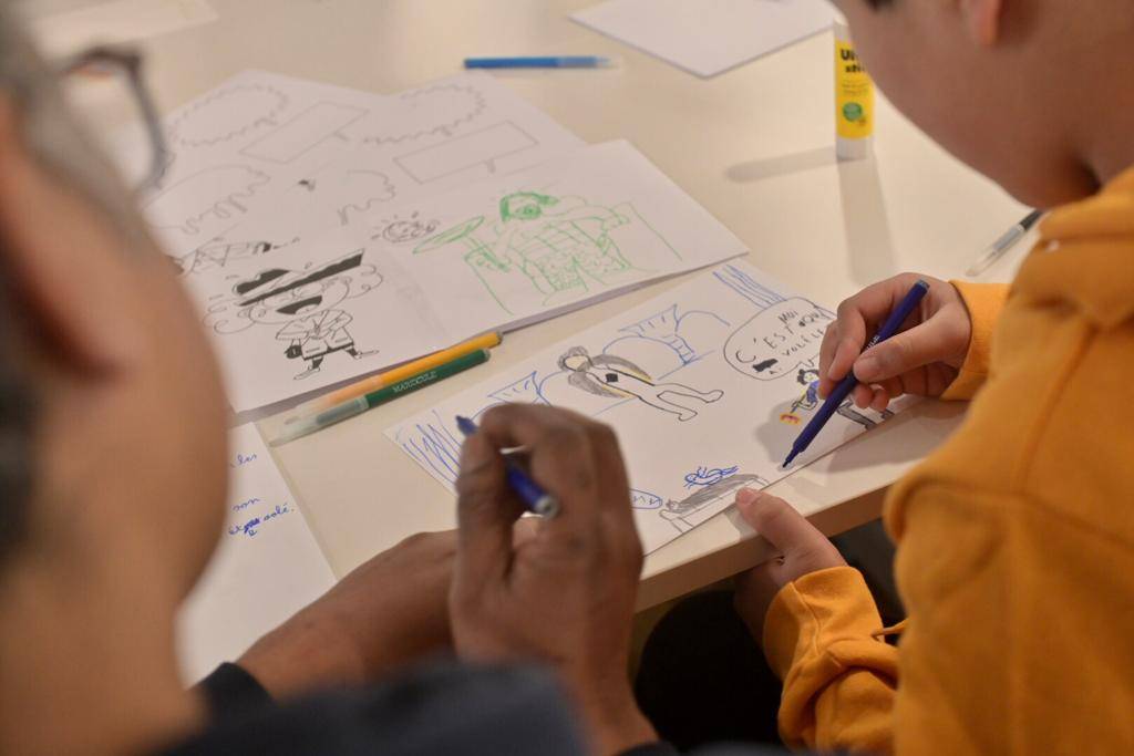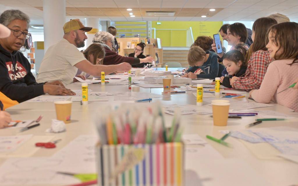 AccueilActualités de la ville de Niort Regards Noirs : atelier parents enfants :Regards Noirs : atelier parents enfantsFestival du polar Regards Noirs : ce matin, atelier parents enfants à la médiathèque animé par Benou. A l’aide de crayons et ciseaux, ils ont inventé une enquête pour les petits détectives de l’Agence Clo et Couette.Publié le 01/03/2023Galerie photos/vidéos