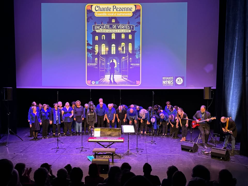 [Festival du polar, Regards Noirs] EnquĂȘte...de vĂ©ritĂ©s par la chorale Chante-Pezenne ce matin au Moulin du Roc - ScĂšne nationale Ă Niort pour ouvrir la derniĂšre journĂ©e du festival. Elle a interprĂȘtĂ© des extraits d'une comĂ©die musicale actuellement en crĂ©ation. A retrouver bientĂŽt Ă Niort.