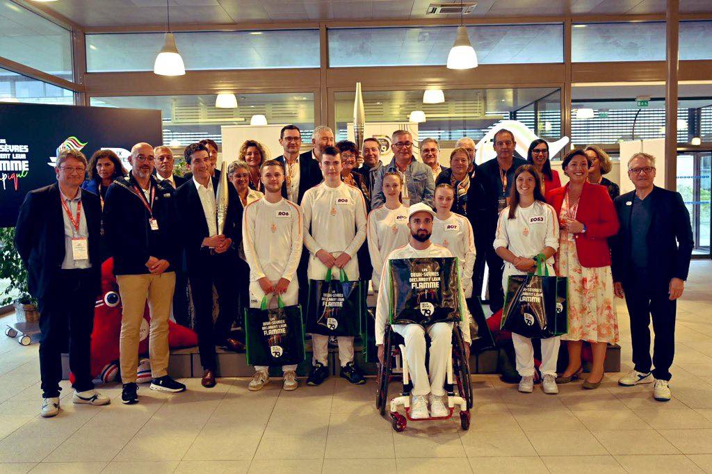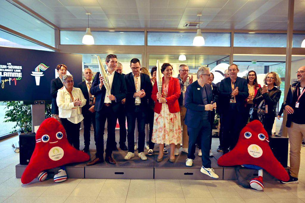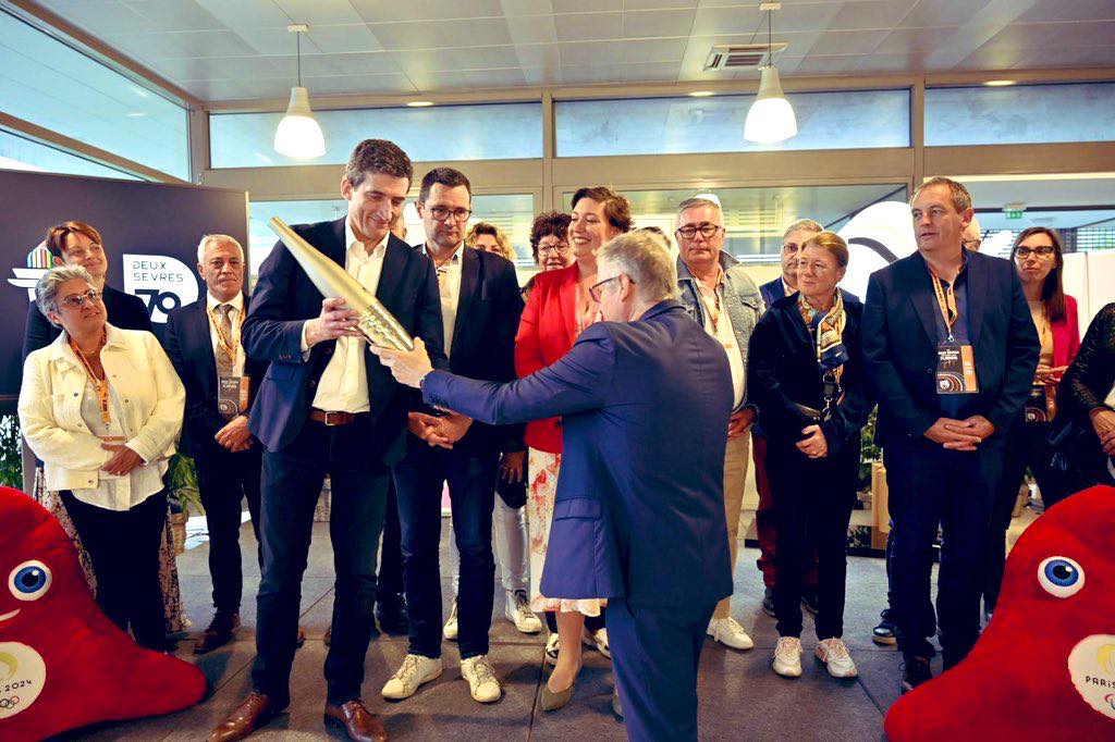 #JO2024 Après l’embrasement du chaudron Place Chanzy, Paris2024 a remis 2 torches au Deux-Sevres pour ce souvenir de cette magnifique journée du 2 juin : une pour le Département et une pour #Niort ville étape. Celle de la ville sera présentée très prochainement aux niortais