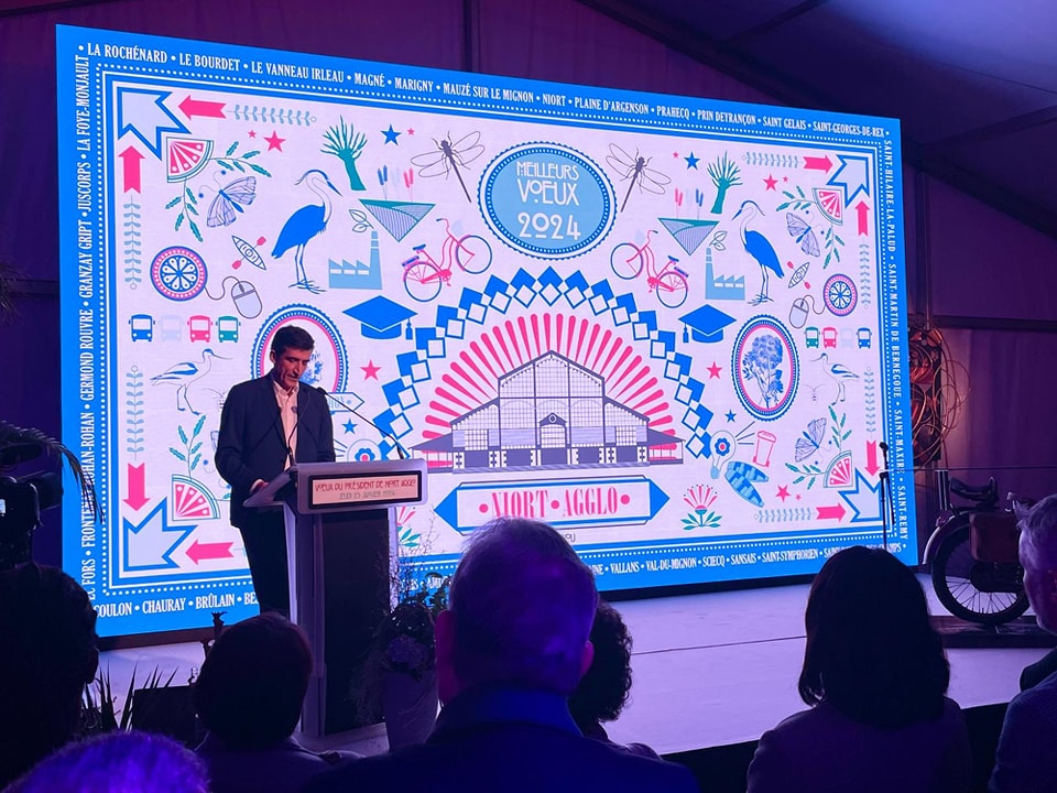 #Voeux2024 Ce soir, plus de 900 chefs d'entreprises, responsables d'associations de l'ESS, élus ont répondu présent à la cérémonie des voeux de #NiortAgglo se déroulant dans les locaux du Groupe Rouvreau, à Saint-Florent à #Niort.