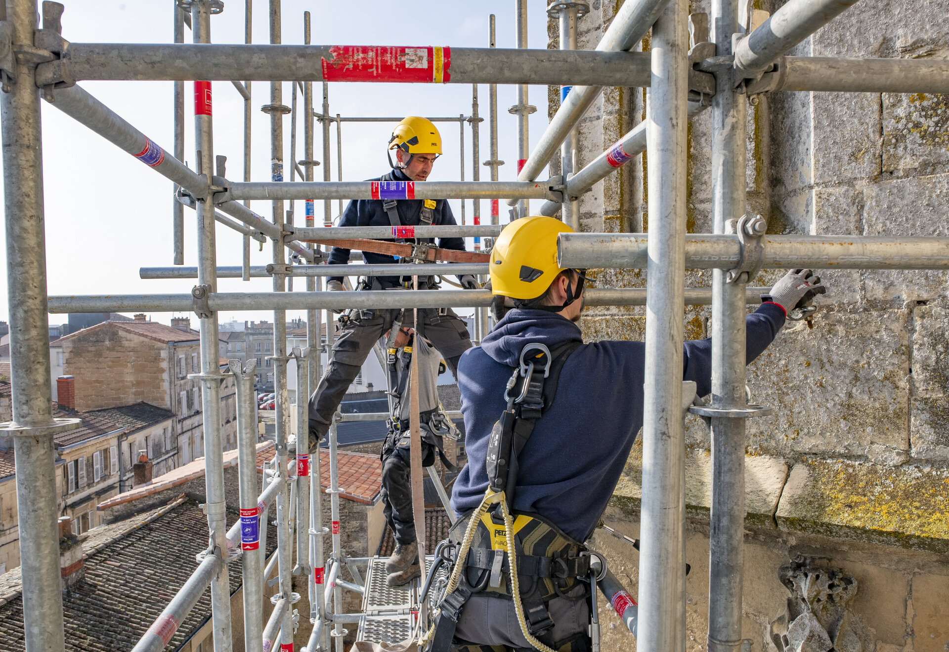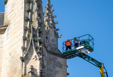 Les travaux vont d’abord porter sur le clocher du XVe siècle et sa flèche. « Après restauration des maçonneries, on va venir installer à l’intérieur de la flèche des planchers de visite métalliques qui vont aussi la conforter », décrit Marie-Pierre Niguès, architecte du patrimoine à qui la Ville de Niort a confié la maîtrise d’œuvre du chantier. Tous les éléments sculptés vont être remis en valeur. « Les parements en pierre et sculptures gothiques sont très altérés, notamment par l'effet du vent, de la pluie, du gel... Les secousses sismiques ont aggravé l’état de l’édifice. » Les quatre grandes statues d’échevins du clocher, qui mesurent chacune 2,50 mètres de hauteur, vont bénéficier de l’intervention d’un restaurateur-conservateur de pierres sculptées.