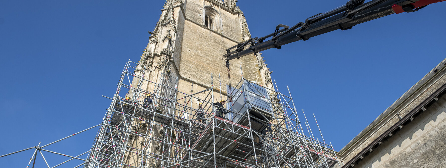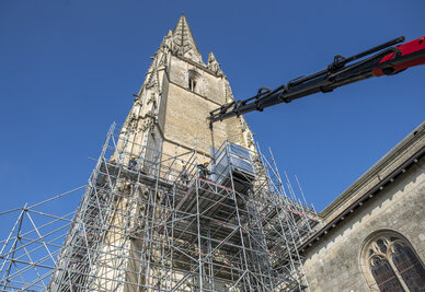 Restauration de la partie haute de la tour du clocher (15 mois) : de mi-2026 à mi-2027.