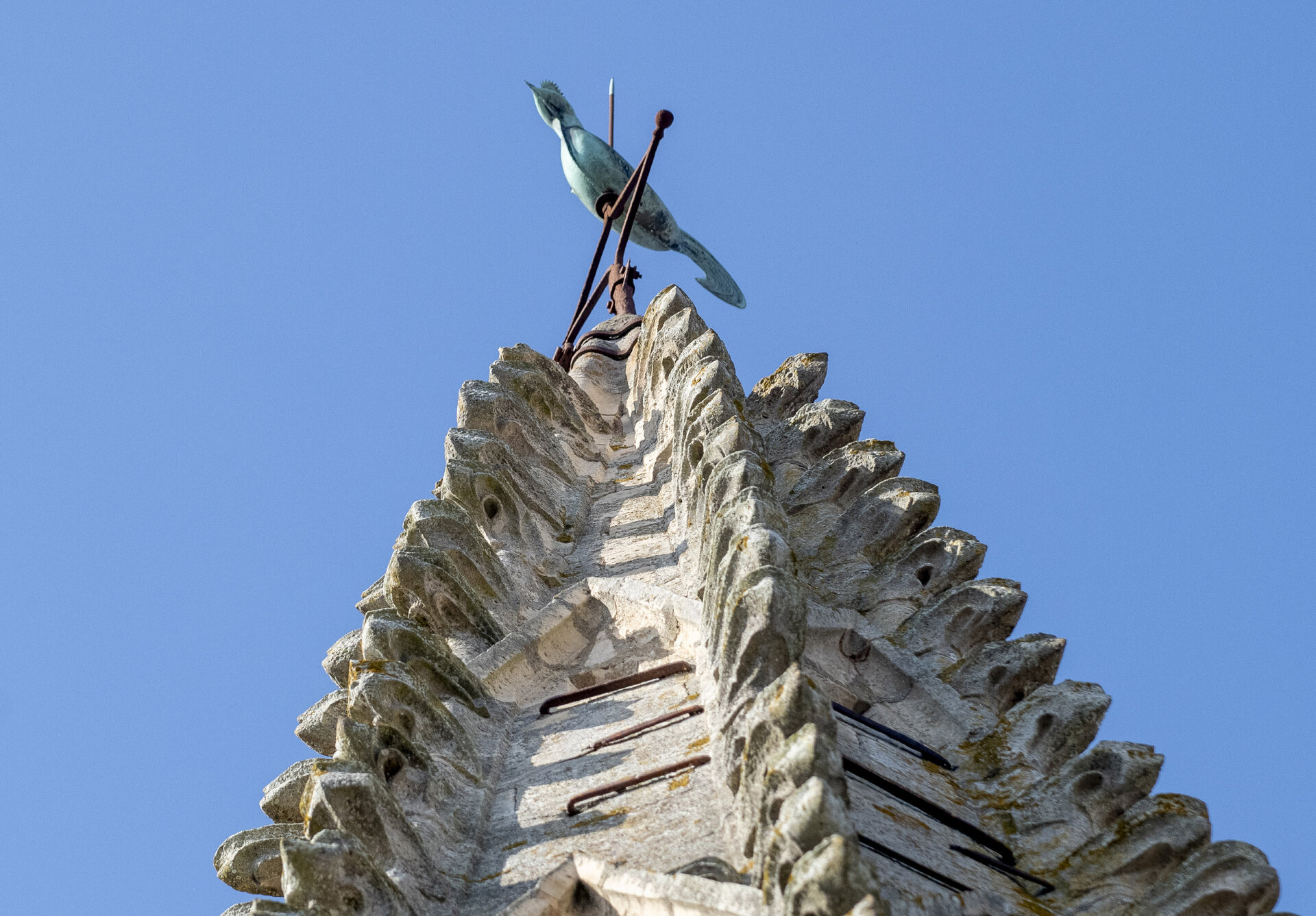 À partir du printemps 2026, les compagnons des Ateliers Enache (Paris) se mettront à l’oeuvre à leur tour pour restaurer les pierres moulurées et sculptées de la flèche, de la coursive et du beffroi.