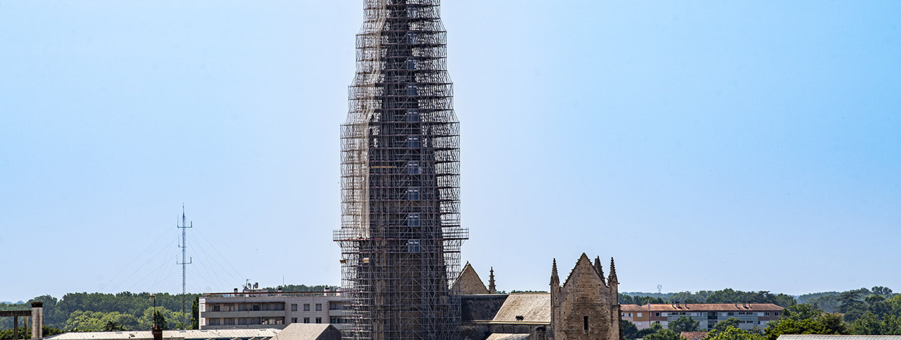Cent quatre-vingt-trois ans plus tard, une nouvelle maîtrise d’oeuvre prend le relais. Il s’agit toujours de réparer les dégâts de la tempête de 1737. À partir de ce mois de septembre 2025 suivant les consignes de Marie-Pierre Niguès, la Somebat, entreprise de maçonnerie et de taille de pierre basée à Saint-Symphorien, va purger la flèche de ses éléments métalliques et de ses joints en ciment. Les vingt-cinq derniers rangs de pierres vont être déposés. Les blocs altérés seront réparés, ceux qui ne peuvent pas l’être seront remplacés par des pierres issues de carrières situées dans la Vienne. La pointe de la flèche sera ensuite reconstruite, maçonnée au mortier de chaux. Un nouveau dispositif anti-foudre sera mis en place