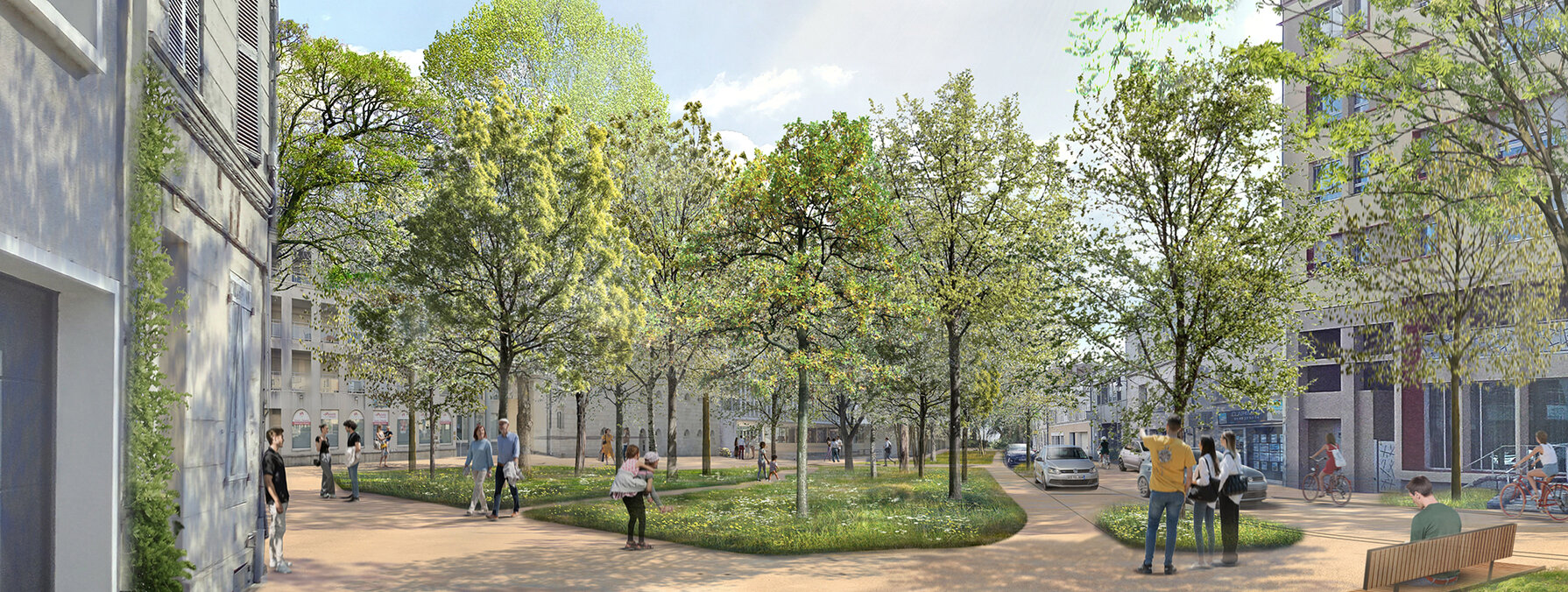 L’ambition est bien évidemment de lutter contre les îlots de chaleur, de capter le carbone, de permettre l’infiltration des eaux de pluie, de favoriser la biodiversité, mais aussi de rééquilibrer le partage de l’espace public et d’encourager les mobilités actives. Une zone de rencontre (vitesse limitée à 20 km/heure) sera créée sur toute la longueur du boulevard Main, avec mise en place d’un double-sens cyclable. La large promenade piétonne et cyclable le long de la médiathèque contribuera à renforcer l’attractivité de ce secteur, situé en rive droite de la Sèvre niortaise.