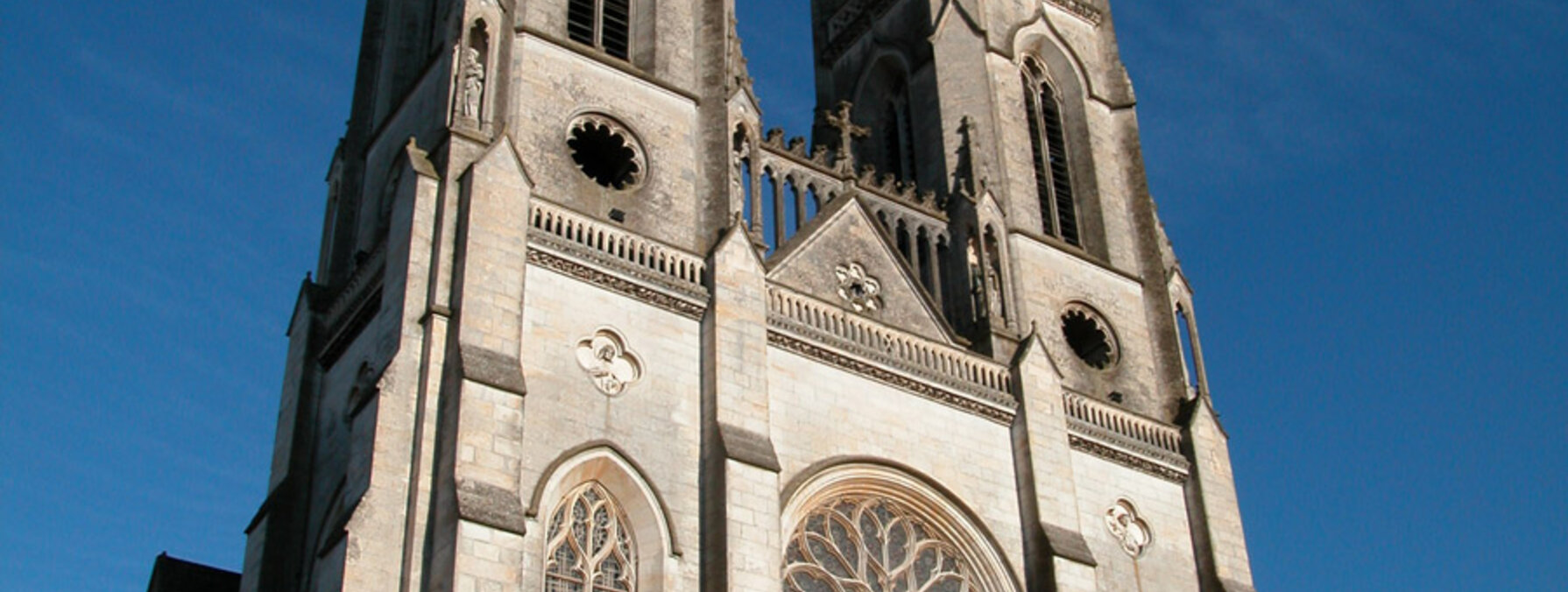L'édifice actuel élevé de 1855 à 1863 par l'architecte niortais Segrétain, est considéré comme un pastiche assez heureux d'un édifice gothique du XIIIe siècle. A l'intérieur vers le chevet, du côté sud, on peut encore voir les restes de chapelles d'époque Renaissance. Les peintures murales du choeur et du transept (fin XIXe siècle) sont dues à Louis Germain, peintre niortais qui décora aussi l'église Saint-Hilaire.